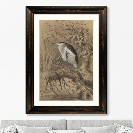 Картина «Птица у озера 1890 г.»: винтажная репродукция в аутентичной раме
